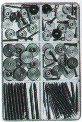 циркуль, удлиннитель, рейсфедер, держатель для рейсфедера, пенал